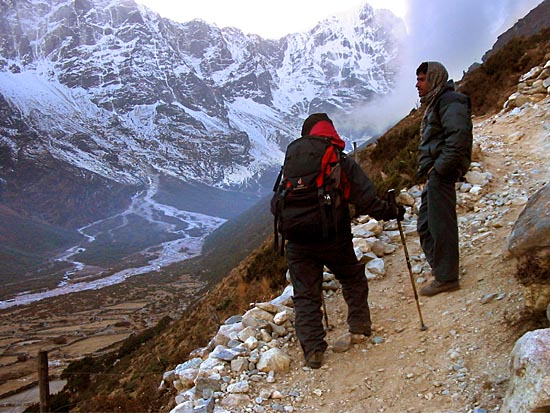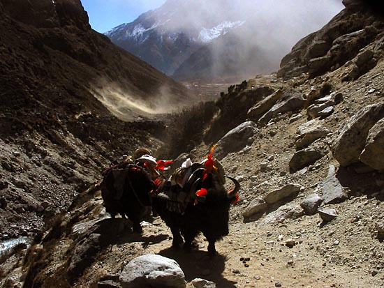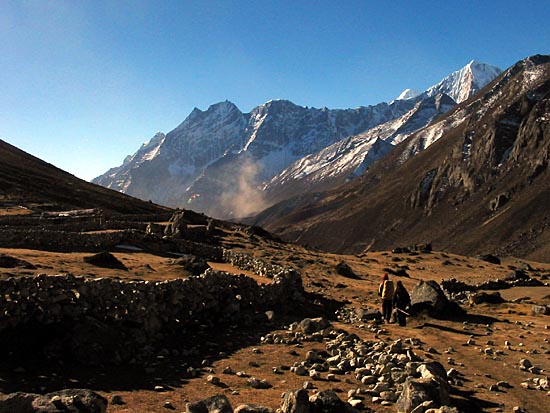 heading south down the Bhote Koshi Valley towards Thame, the trail crosses numerous grazing grounds