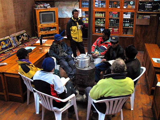 all gathered around the furnace for warmth... a typical scene in the tea lodges