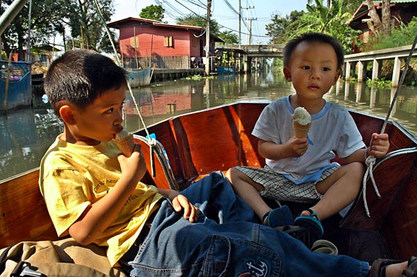 from the canals, we can see traditional Thai houses that are built right next to the water, and we can also observe the way the people here live and their means of travel by boats