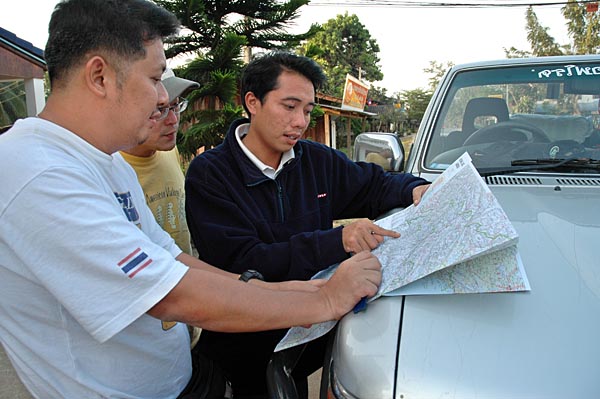 getting advice from the locals... with at least 8 hours of dirt track ahead of us to Luang Nam Tha, we decided to spend the night at Houei Sai