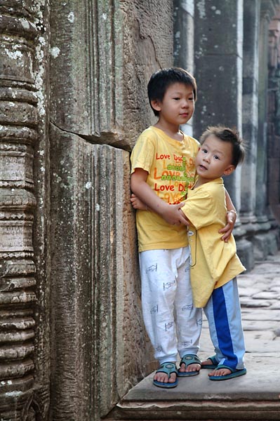 the ancient temple is rectangular in shape, 655 m wide and 1,033 m long, is surrounded by a red sandstone outer wall which is punctuated by gate towers (gopura) at the four cardinal points
