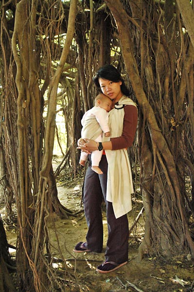 just at the edge of Phimai town is Thailand's largest and oldest banyan tree, a megaflorum spreading over an island in a small ancient reservoir built by the Khmer; the huge banyan tree is known as Sai Ngam, meaning "beautiful banyan"