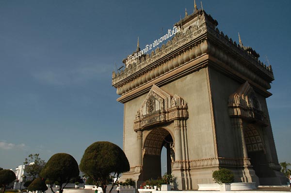 Patuxai the official Lao name for the monument, is approximately equivalent to Arch (patuu translated as door or gate) of Triumph (xai meaning victory from Sanskrit)