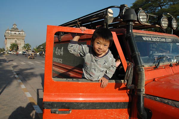 | the huge arch is located on a road island at the end of Thanon Lan Xang; from a distance looks very much like its French source of inspiration but up close, the bas-relief on the sides and the temple-like ornamentation along the top and cornices of the arch is typically Lao | ||||||