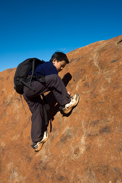 YiXuan is a good rock climber.. taking on a steep wall without help