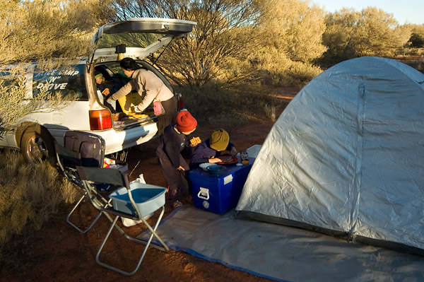 | camping beyond the western boundary of the national park, we found an excellent secluded camping site off the lonely Great Central Road, a road that leads to a lot of nothing and is the shortest cut from here to Western Australia | |||||