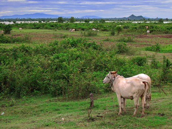 Just a few kilometers north of Phnom Penh along highway 5 is the commune of Ponnea Lueu. The flat wetlands affords a gppd view of Phnom Oudong in the near distance and the mountains further beyond. |