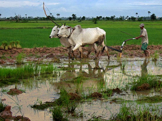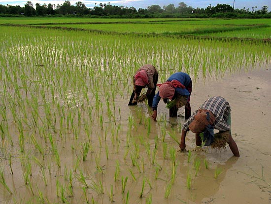 Whilst exploring the paddies, farmers can be seen working on a new season of rice crops. |