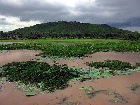 kilometers south of Phnom Penh is the temple-topped
