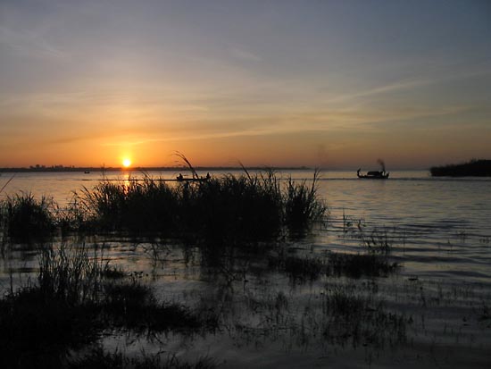 The sunrise over the Mekong is spectacular, as plying boats make good subjects. |