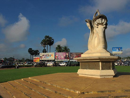 A monument to commemorate the building of the American-Khmer Friendship Highway that links Phnom Penh with Sihanoukville.Built in 1959, Highway 4 is the probably the only good condition trunk road in the whole of Cambodia. |