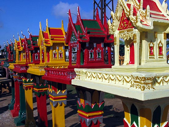 For sale... colourful alters line the roadside at Chom Chau. |