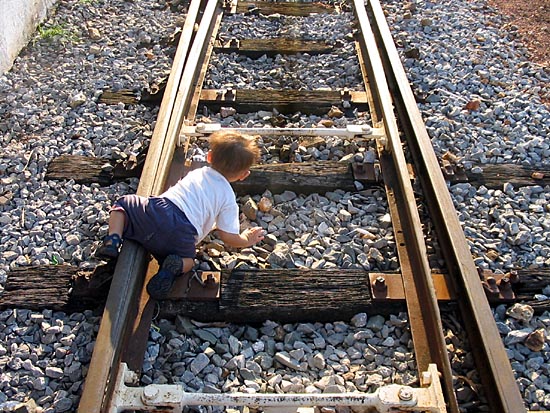 At the railway station, Ek Hohn goes about exploring the railway lines on his own. |