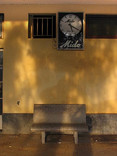A clock and a stone bench. All that you need while waiting for the train at the railway station. |