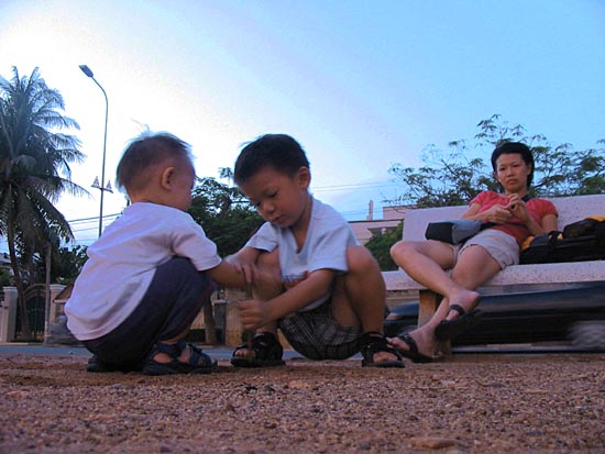 Playing with the gravel on the ground at Hun Sen Park... Phnom Penh's best substituted to sand at the beach. |