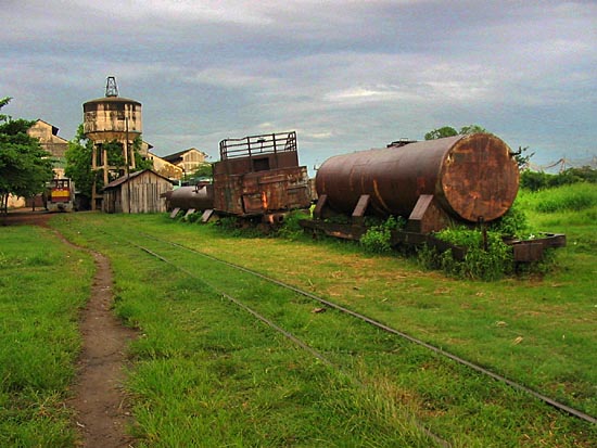Water fillers for the steam engines of yesteryears. The modernisation of the Royal Cambodian Railway had meant retirement of the old steam engine fleet. These water fillers serve another purpose today... as an electrical cable pole. |