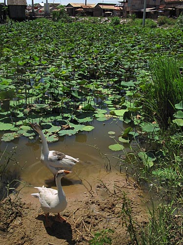 Water is life, and water has special significance and importance to the people of Cambodia and throughout Indochina. Homes in the outskirts of town and in the rural areas often have ponds. These ponds serve many needs... from agriculture to washing. |