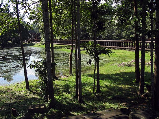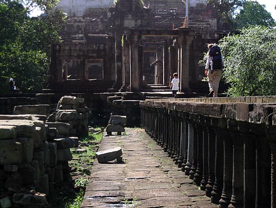 The massive size and grandeur of the Baphuon is unrecognisable today because much of the temple is either collapsed or been dismantled. Much of the temple is under restoration and hence off limits to visitors. Open to visitors is the temple's main approach, a 200 m elevated sandstone walkway. |