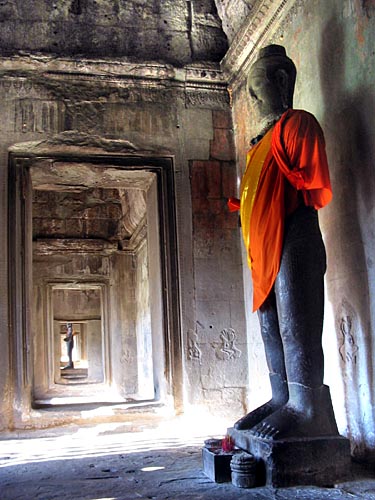 Originally a Hindu temple, it became a Theravada Buddhist monument in the 16th century. After the capital shifted to Phnom Penh, Angkor Wat was cared for by Buddhist monks. |