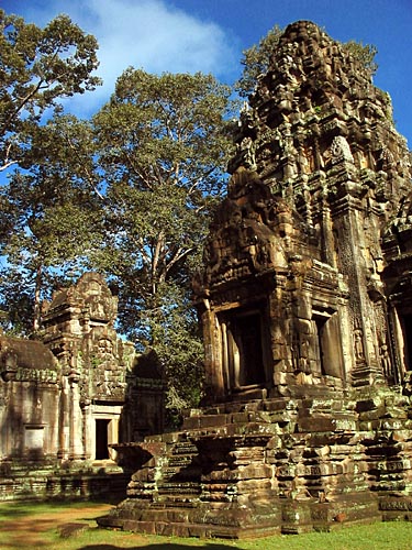 Thommanon is a small attractive temple that is still in very good condition. Built at the same time as Angkor Wat, the influence is seen easily in the style of the carved apsaras and towers. The temple seems to stand in conjunction with Chau Say Tevoda, an architecturally similar temple which stands just across the street. Eventhough Thommanon was built decades before chau Say Tevoda, it is is much better condition than the later. |