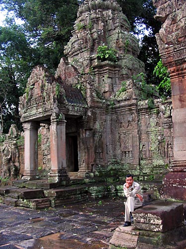 True to the rainy season, a cool refreshing shower broke at the start of our exploration of this temple. |
