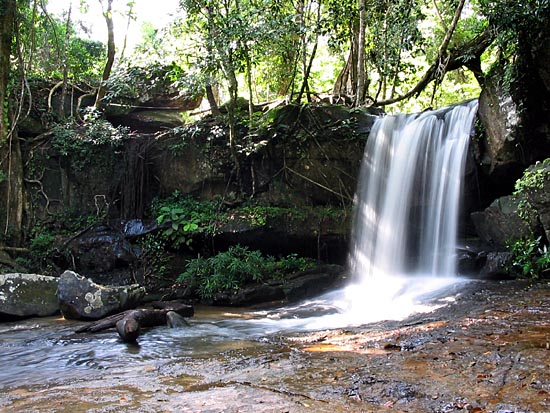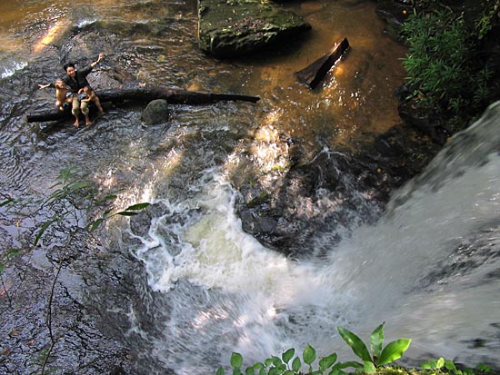 Deep in a distant forest about 30 km north of Angkor, and necessitating a 45 minute uphill trek in the woods. A most welcomed and refreshing change from the busy temple ruins of Angkor. The reward for our efforts are the jewels in this upper reaches of the Siem Reap River. |