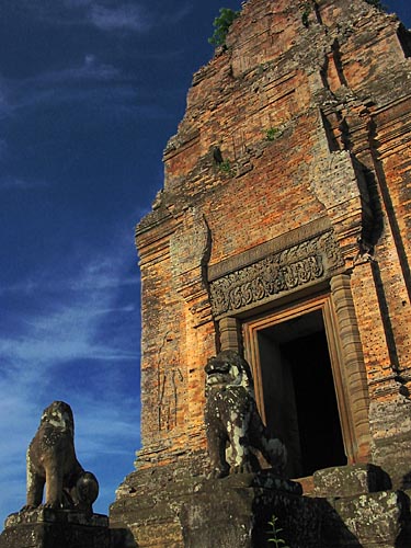 Like its neighbour Pre Rup, the East Mebon was built by King Rajendravarman II in 952. It was the first temple to be built after the capital was returned from Koh Ker to Angkor. The temple was dedicated to Shiva in honour of the king's parents. |