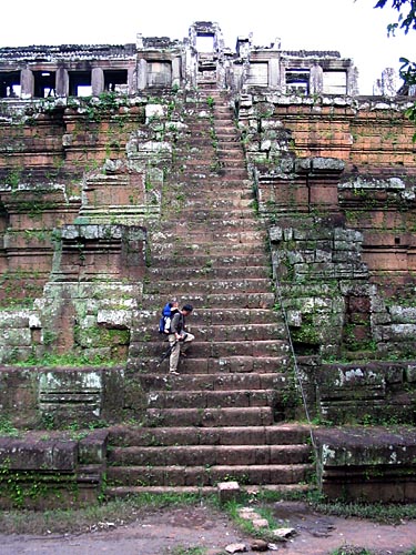 The lack of surviving carvings leaves the temple artistically uninteresting, but it is the tallest scalable temple in Angkor Thom. |