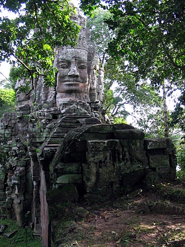 The four faces atop the gate is best appreciated by climbing up the side walls. |