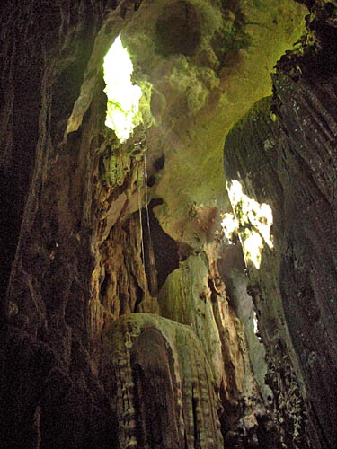the cave is 435 meters long, at some sections the roof is more than 50 meters high, and there are two skylights lighting up the mid section of the cave