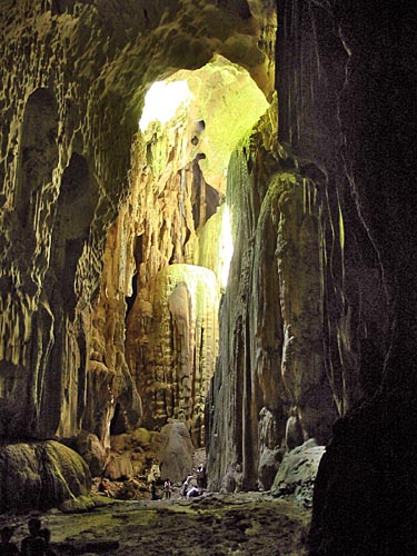 the high roof and large cavern gives the impression of one being in a very large cathedral, and hence the namesake