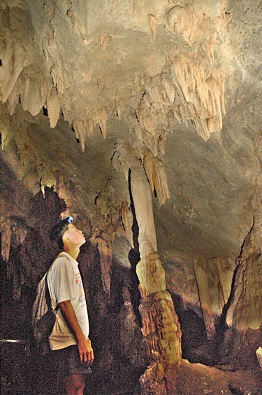 Ahli admiring the many stalactites on the ceiling showing varying stages of their development