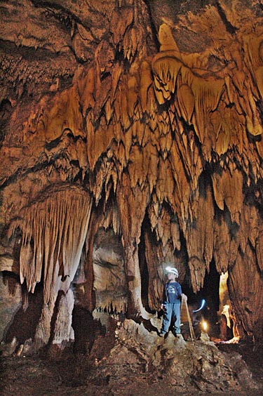 like the teeth of a giant, these beautiful stalactites is an overwhelming sight in this large chamber