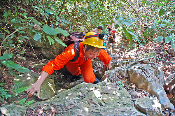 getting to the cave entrance required a short scramble up the steep side of the massive
