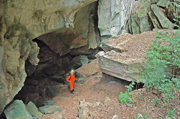 the cave exit that opens into the small wang as viewed from the top