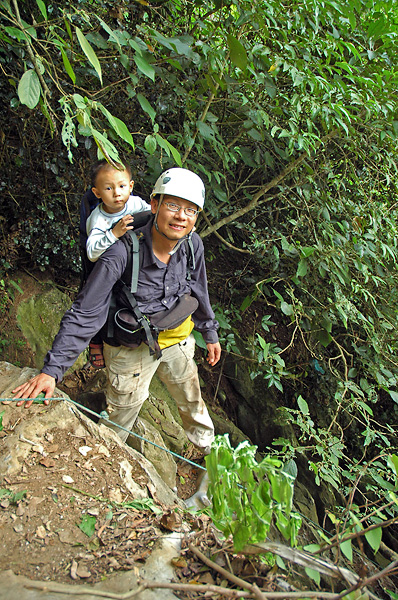 down climbing the steep limestone wall to get back to the railway station