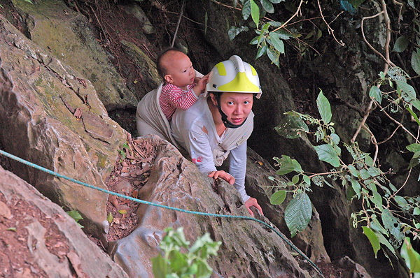 Ek Lynn enjoying the bumpy ride down in the comforts of mama's sarong