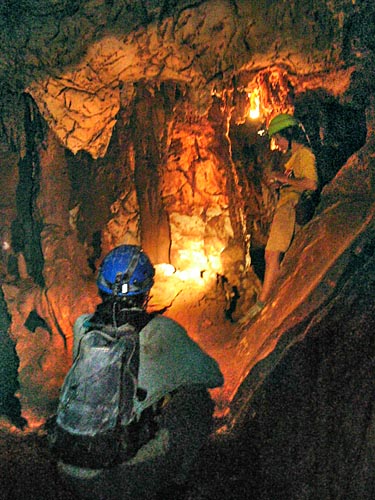 lighting up the dark tunnel as Liz prepares to take a photo of the formations