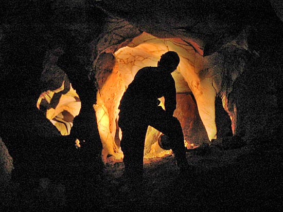 explores one of the tunnels leading from the main chamber
