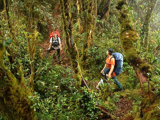 Trekking through the montane forest