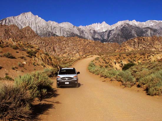 | The outstanding features and environment of the Alabama Hills has attracted movie makers from all over the world since the early 1920's... and movie stars such as the Lone Ranger, have been shooting it out with outlaws here. Classics such as Gunga Din, Springfield Rifle, and How the West was Won, were filmed at sites now known as "Movie Flats" and Movie Flat Road. Portions of more recent films have also been shot here. | ||||