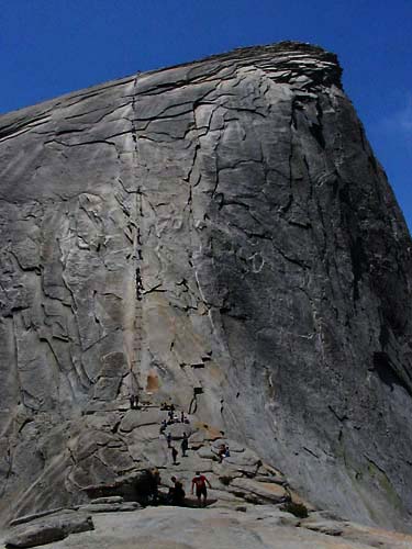 | The final 200 yards of ascend. The pair of cable railings and horizontal wooden rungs aid hikers to ascend this very steep final stretch... almost 45 degrees angle. Merely looking at the cable way and steep gradients send the chills down the spine of many, hence it is not uncommon that many hikers turn back here. | ||||