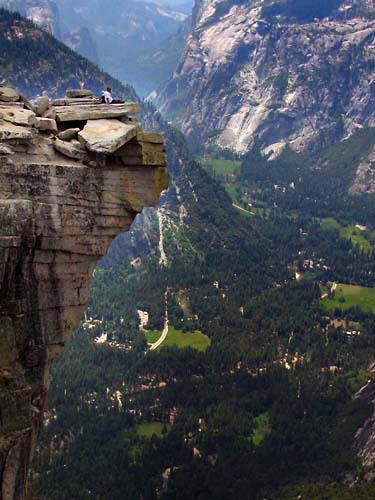 Bobby relaxing on the famous brink of Half Dome's summit. Under him is 4,737 feet of nothingness to the valley floor below.