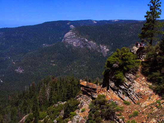 | From this viewpoint at the top end of the Mariposa Grove, vistas of Wawona Meadow, Wawona Dome, distant peaks of the Yosemite Sierra, and the California Coast Range can be enjoyed. | ||||