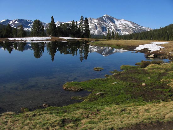 The trail to Mount Dana starts from the Tioga Pass, due east just within the park entrance. At 9,945 feet, much of Tioga Pass is still snow covered.