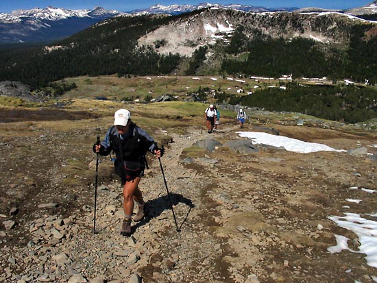 Well above the treeline... from subalpine pasture to rocky alpine terrain, the use trail ends at about 1.1 miles from, and is still some 1,400 feet below the summit.