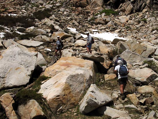 A granite boulder field as we ascend the eastern slopes of the Mount Hoffmann complex.