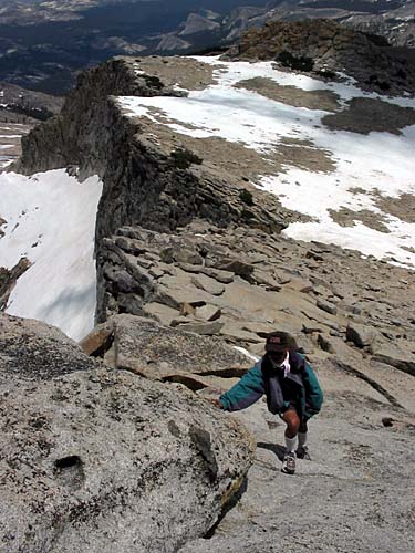 The final scramble to the summit. The climb may seem steep, but is safe and easy as the granite boulders give good grip.