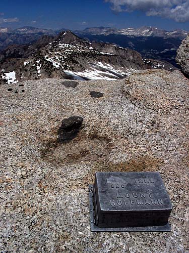 | But alas it's empty. At 10,850 feet, Mount Hoffman is one of the most climbed 10,000+ peak in the park, with only Mounts Dana and Lyell challenging its popularity. On the summit sits a radio transceiver with a solar panel system to power it. | ||||