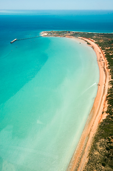 aerial view of Broome Port and Town Beach; the foreground tidal flats is where one can view the famous "Staircase To The Moon" phenomenon which occurs over a few evenings each month between March and October